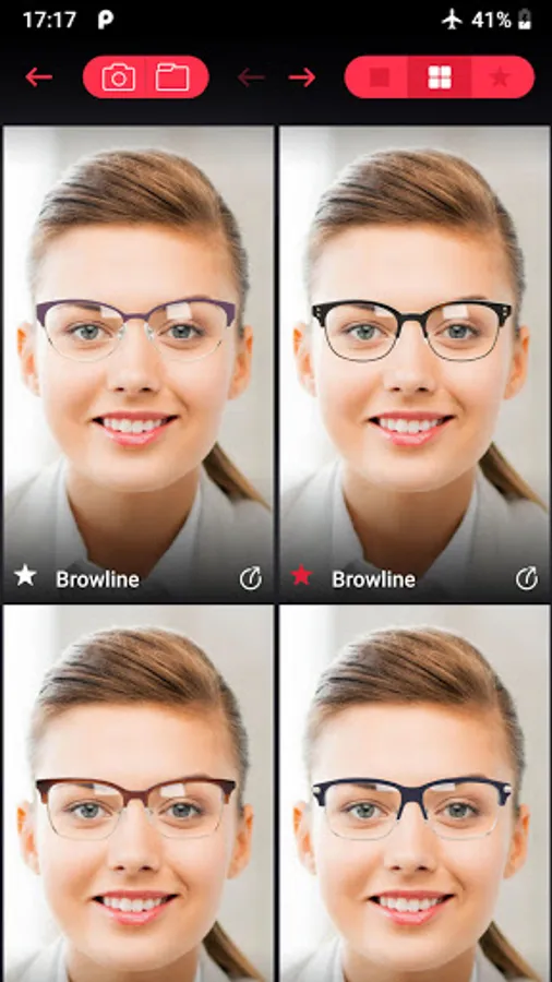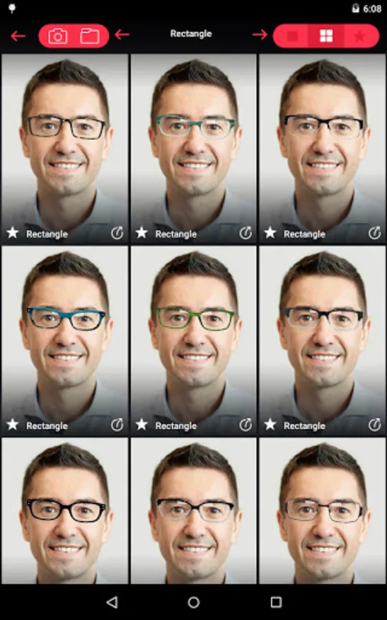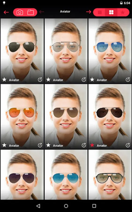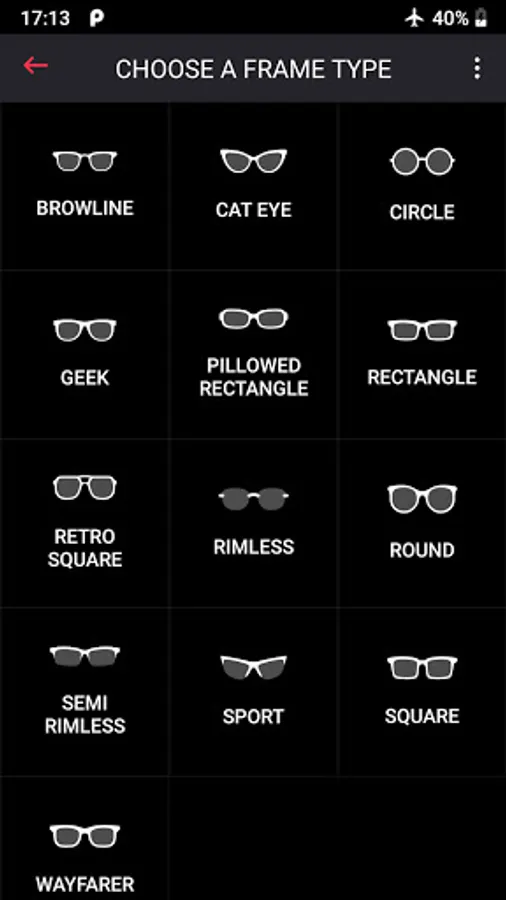 - Choose between different tryon eyeglass or sunglass frame types