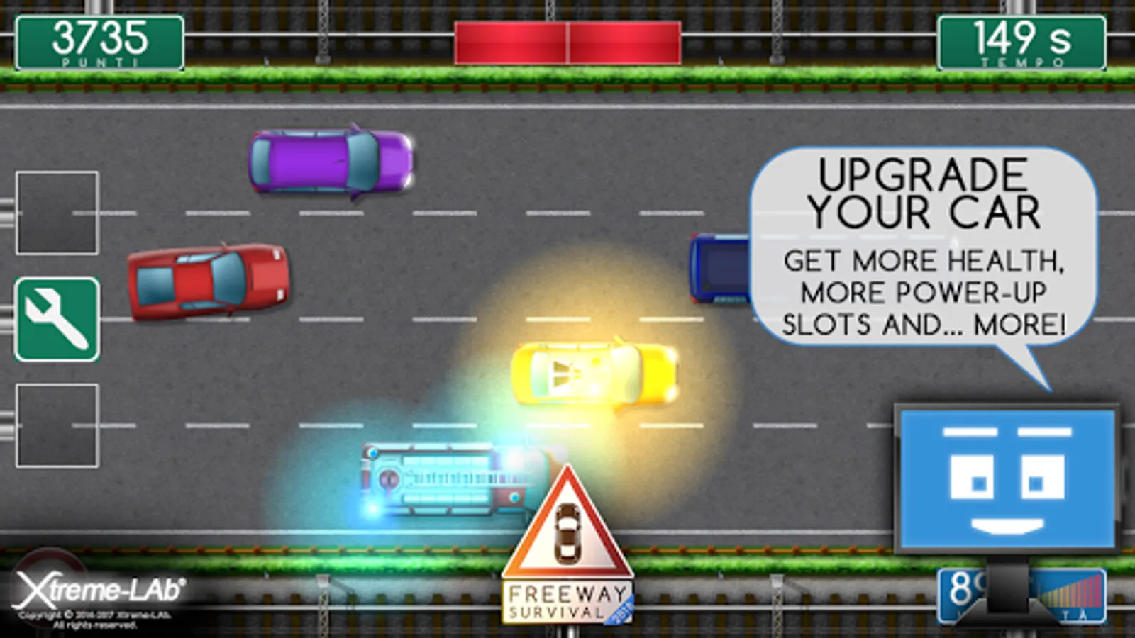 -Unlock new cars with better health, agility (to avoid at the very last second) and power-up slots;