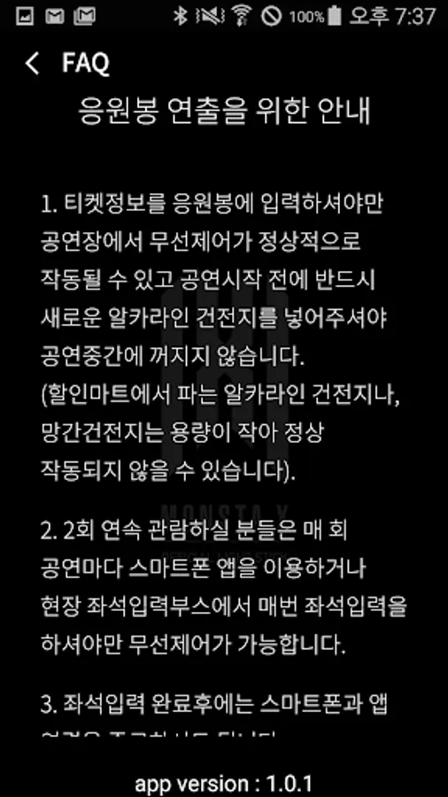 This app is for using the official cheering stick of MONSTA X. Various lighting production and control is possible through the app, so you can enjoy a more enjoyable performance through various productions in the venue.
