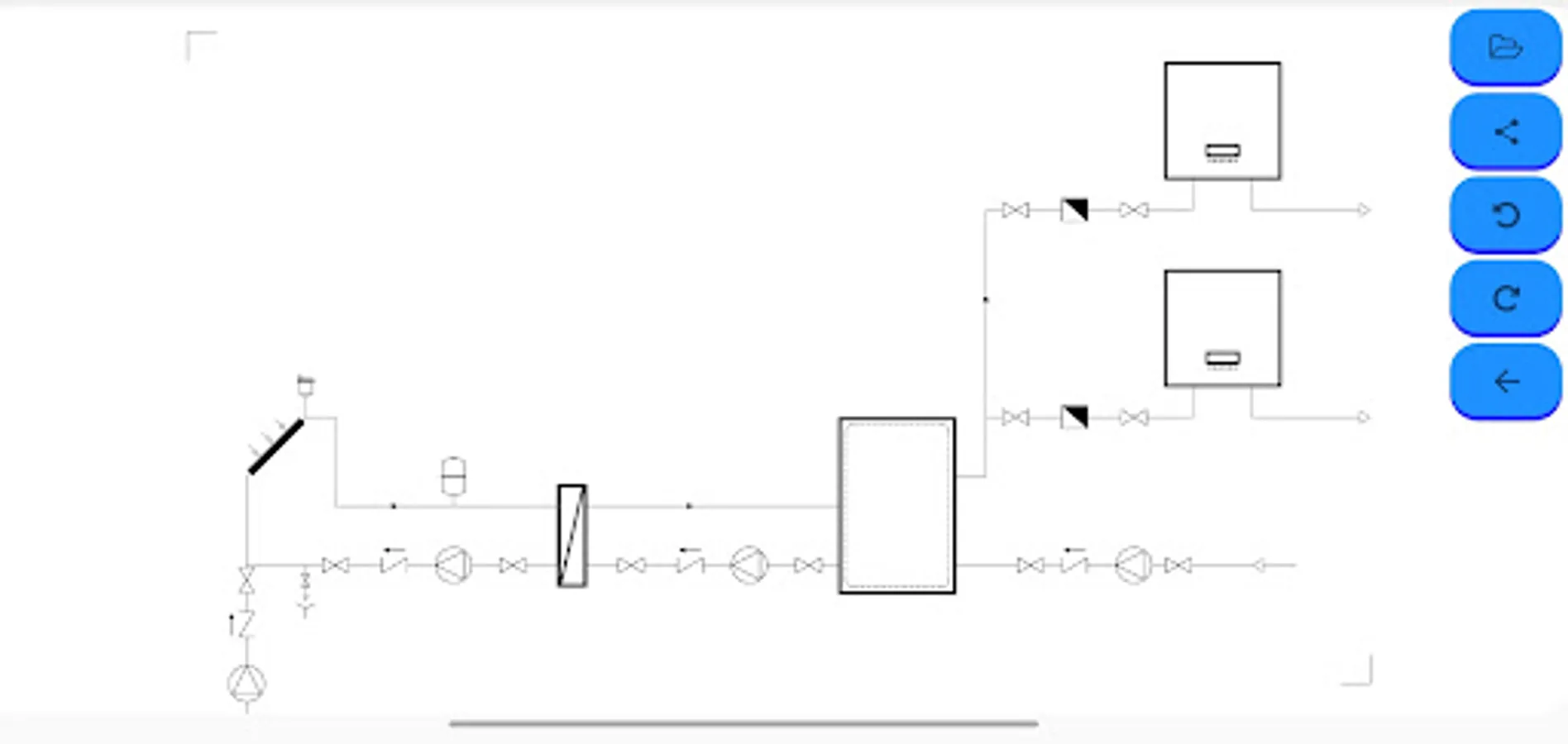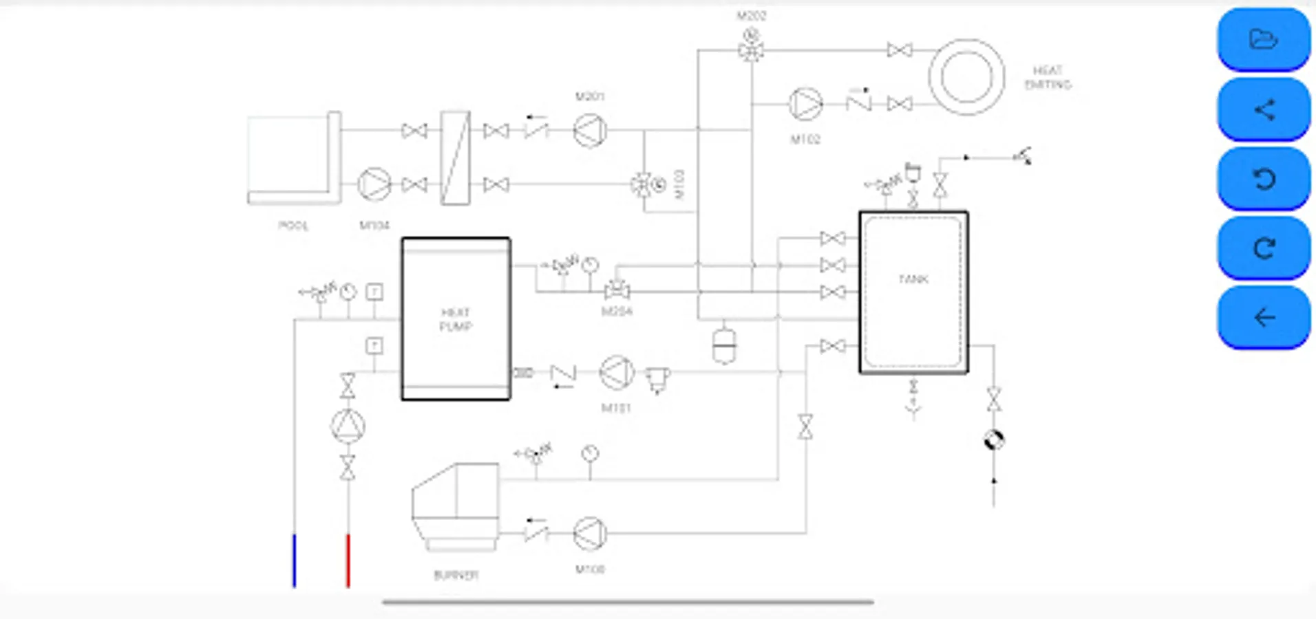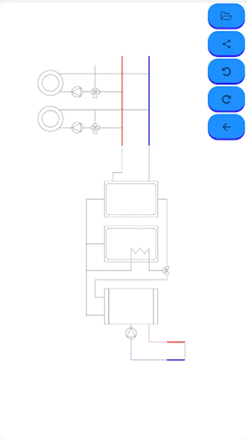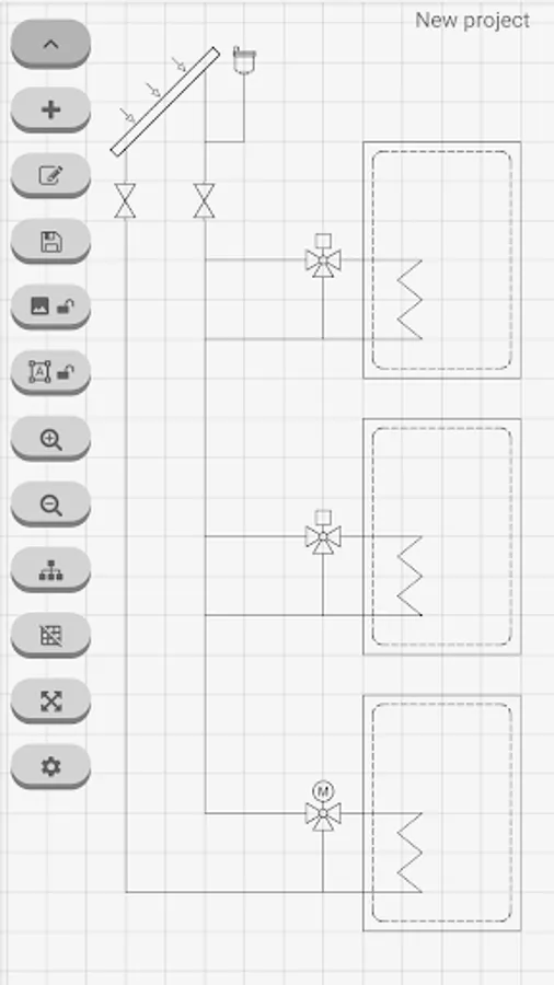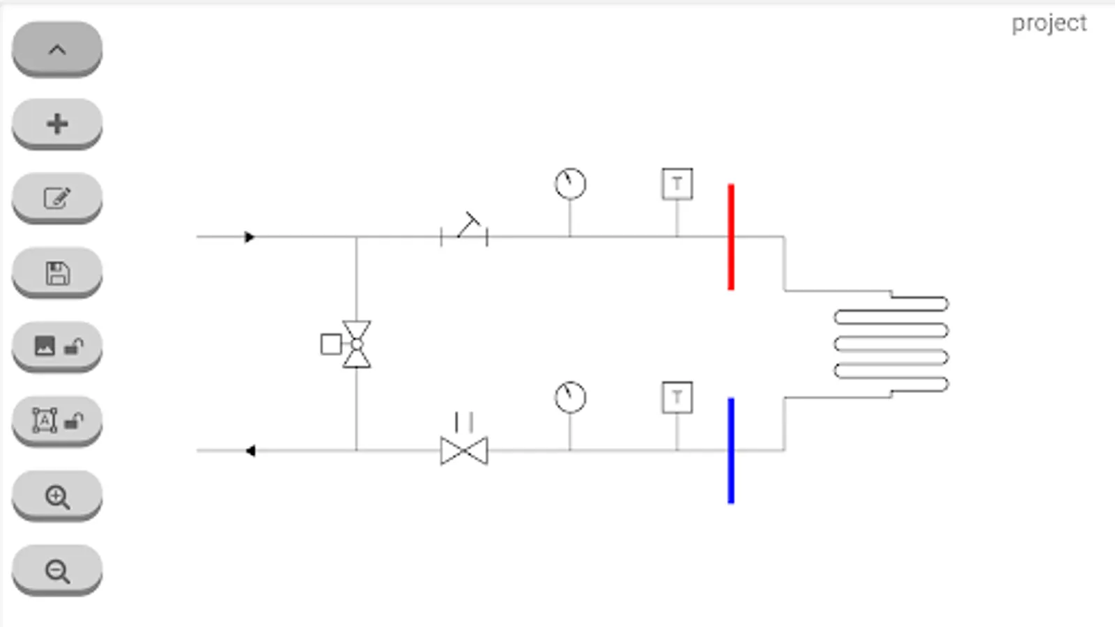 This tool will allow you to create your own hydraulic diagram (heat, cold, air conditioning) quickly and easily, you simply have to select the symbol you want to use, drag and drop it in the desired position.