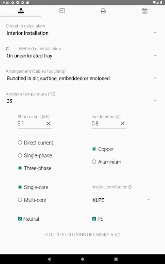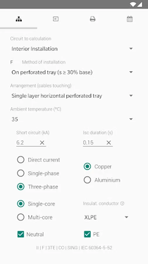 Tool to support the calculation of electrical installations that will allow the user (designer / electrician / technician) to perform electrical calculations easily and quickly.