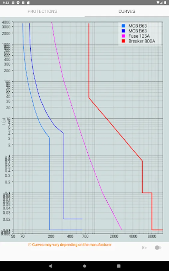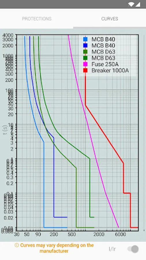 · Representation of the curves of the protections