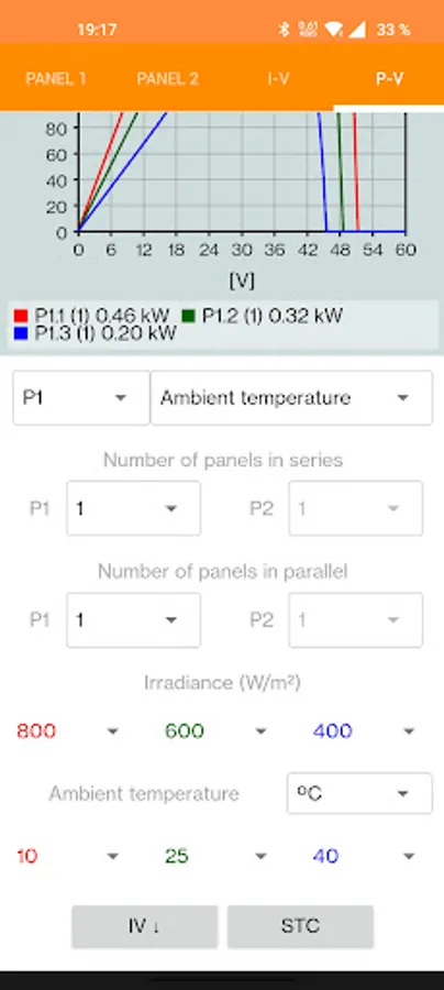 The determination of the parameters of the module allows to simulate the behavior of the photovoltaic panel under different conditions.