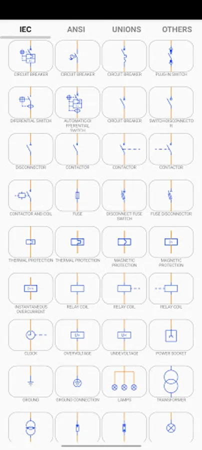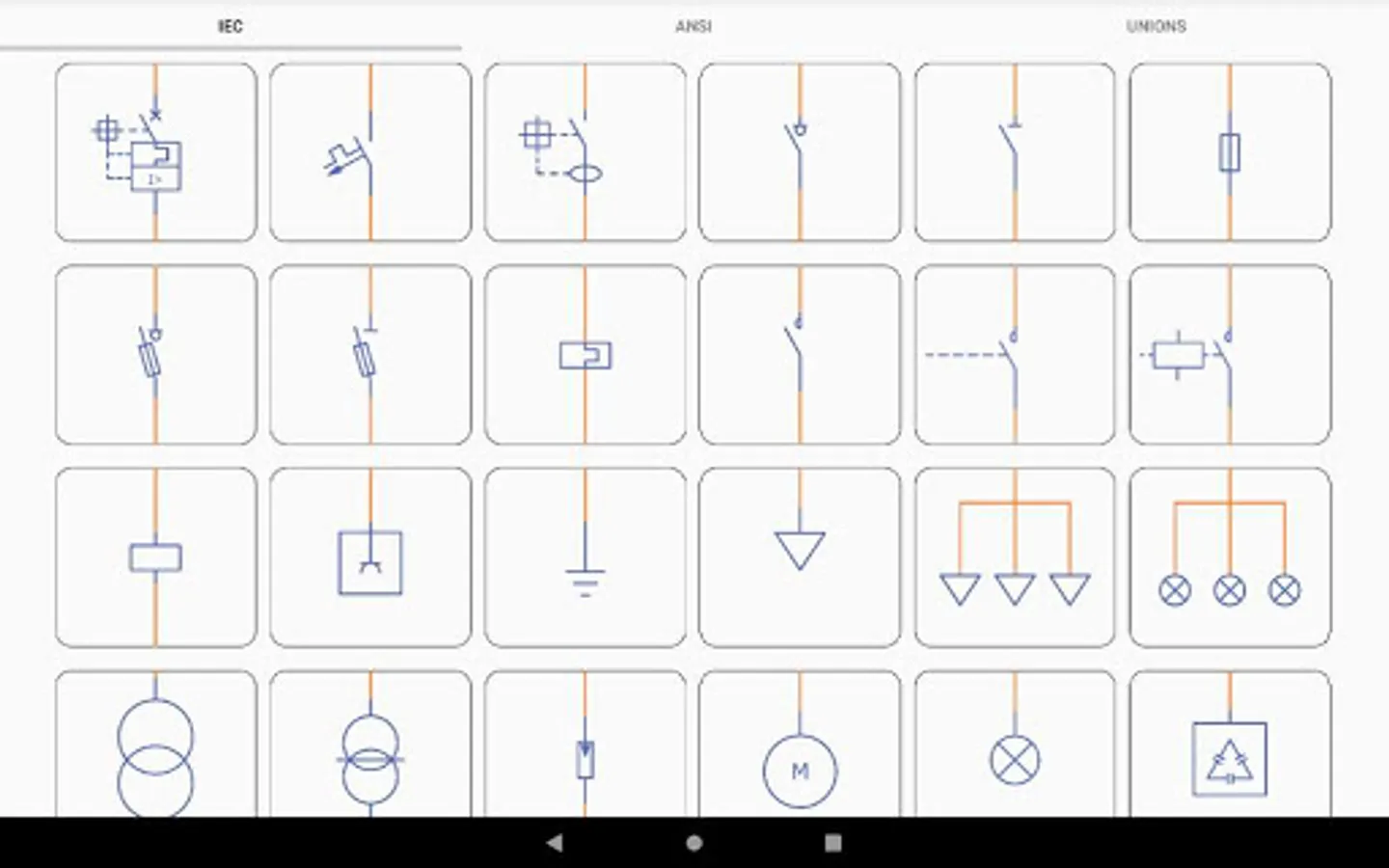 - Symbols according to IEC and ANSI standards for electrical engineering:
