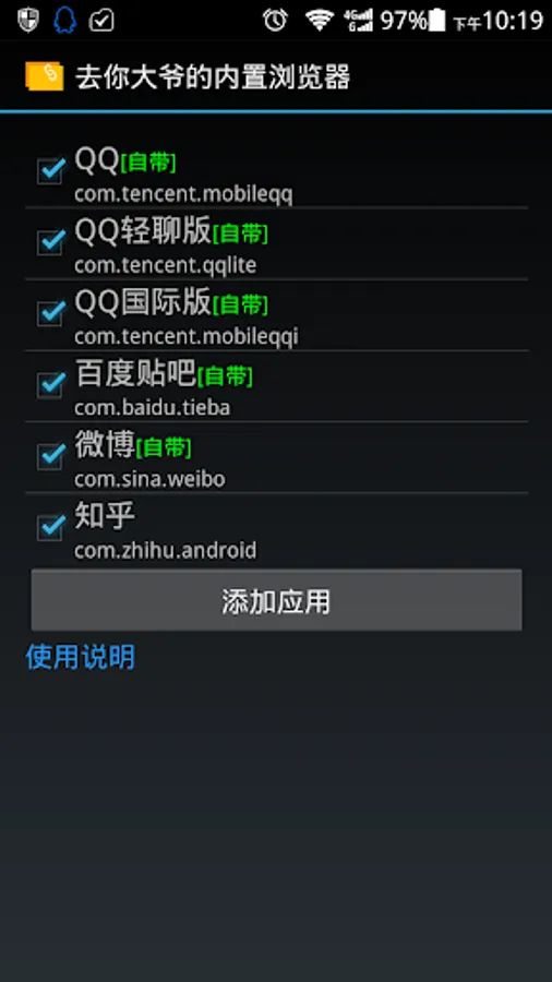 It can take over the micro letter, QQ and other open browser App events, so you can directly open the browser click on the link in the chat page, rather than the App's built-in browser.