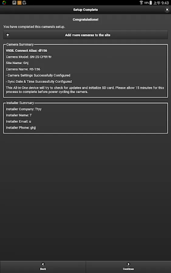 The VISIX Setup utility is an easy-to-use resource for 3xLOGIC installation technicians. When installing VISIX V-Series All-in-One Cameras, a technician may use the app to scan the QR code label on the camera. After verifying camera login info, camera information will be saved into the app which can later be e-mailed to the customer(along with information from all other installed cameras for that site) for their own records. Also, a video preview is provided from the camera so the technician can assure the camera’ field-of-vison is clear and achieves the correct viewing perspective, as per the customer’s needs.
