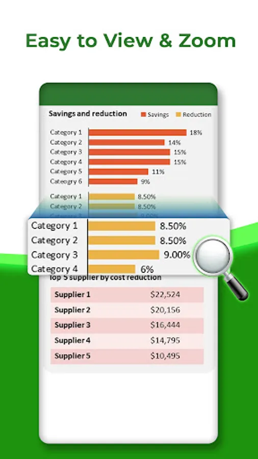 XLS File Viewer opens to an elegant & easy to use interface. Xls reader app's design prioritizes ease of use, allowing even novice users to navigate through spreadsheets effortlessly. All the essential tools and functions, such as formatting options, formulas, and data manipulation features, are conveniently accessible, enabling users to work with their data effectively.