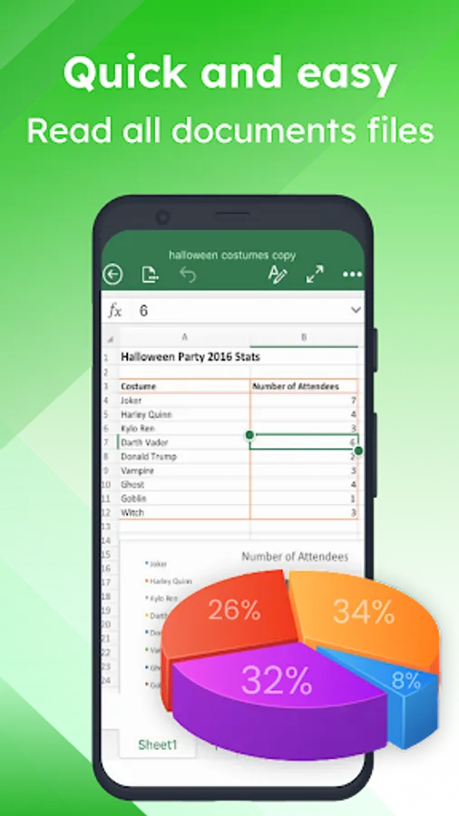 ✅ Read all documents, excel spreadsheets, DOCS, PDF files, Docx files, PPT, Sheets, and TXT from internal memory, email, cloud, web, and external memory very easily.