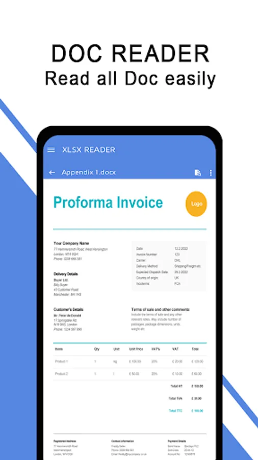 XLSX File Reader: XLXS Reader β XLXS file viewer is a very useful tool for all students and business man, because everyone needs to be open important documents, we bring all files opener for you which can open and read all documents in you phone on single click. Having a lot of business documents, spreadsheets, docx files and pdf documents in your phone? Try this xlxs file reader - XLXS file opener, ppt viewer app and read all documents. Slides Opener and PPT reader offers you to read ppt files, pptx files and school presentations quickly. You can manage your all documents in this document manager: XLS file viewer & Reader. How managing documents is possible? When you install this Xls File Reader & Xlsx Viewer, and allows permission to the app, then it will automatically fetch all documents in one place. XLXS file viewer - xlsx file reader can also fetch word documents and pdf files which means it is a complete office suite which can open all kind of documents. In this modern world it looks awkward that you bring heavy computers or laptops for open XLXS files, read ppt files and other documents, simply install this xlxs file opener: complete office suite application in your android phone and leave that old school systems. To use this, XLXS file reader - xls file viewer you donβt need to pay any cent, because it is free all documents reader - documents manager app.