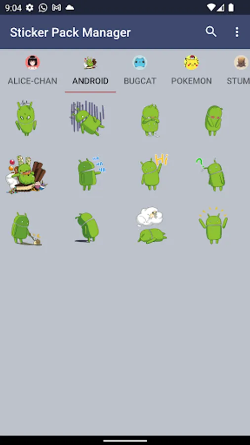 Sticker Pack Manager allows showing recommended stickers as you type in all popular messaging apps (Facebook Messenger, Whatsapp, Line, Messenger, Google Chat, and more supported).
