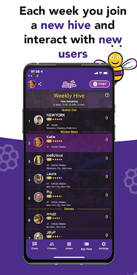 Each week you’ll be assigned to a Hive where you engage in friendly competition with others to become the Queen Bee of the Hive! You are rewarded based on two components: your participation and the user community’s response to your contributions.