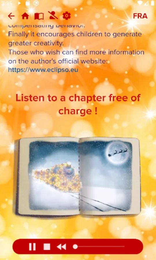 A wonderfull story of a trip to the village of Santa Claus. One chapter every night until Christmas. The text is free of rights without copyright.