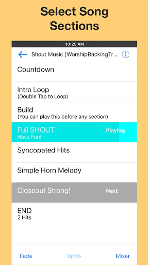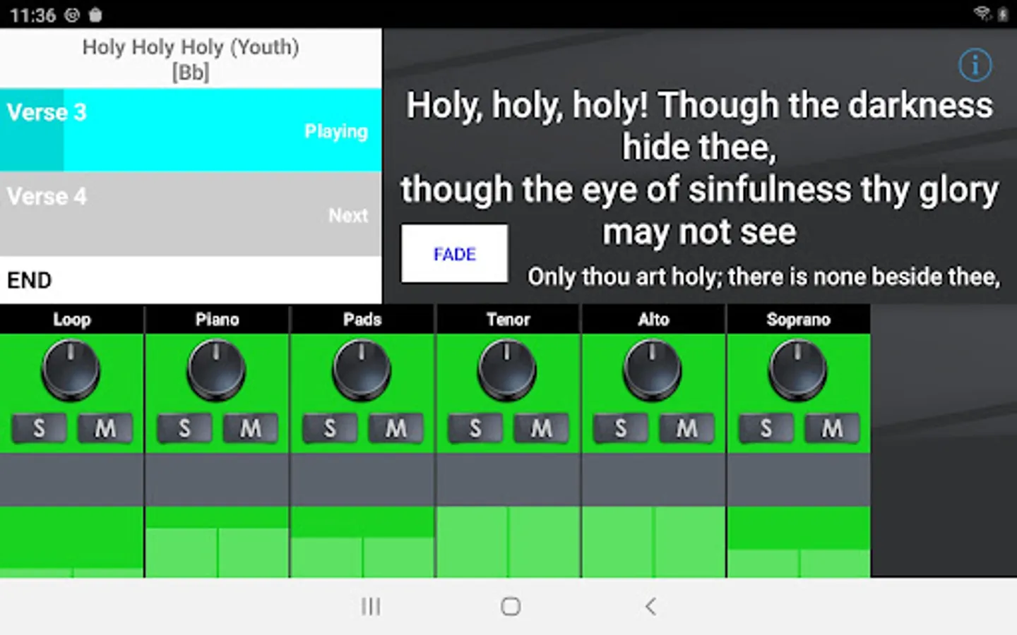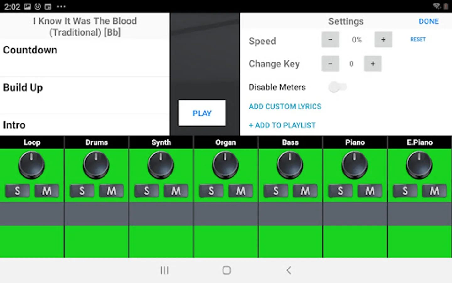 - Ability to go from acoustic version to full band via the mixer. Solo and Mute tracks to fit the feel of any moment. Convert a full song into an altar call or prayer moment by muting vocals, drums and adjusting volumes.