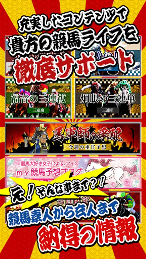 It covers a wide range of information from free forecasts to super-paid class information, and you can enjoy it widely from horse racing amateurs who have just started horse racing and do not know anything ... to horse racing experts who have been racing for decades!