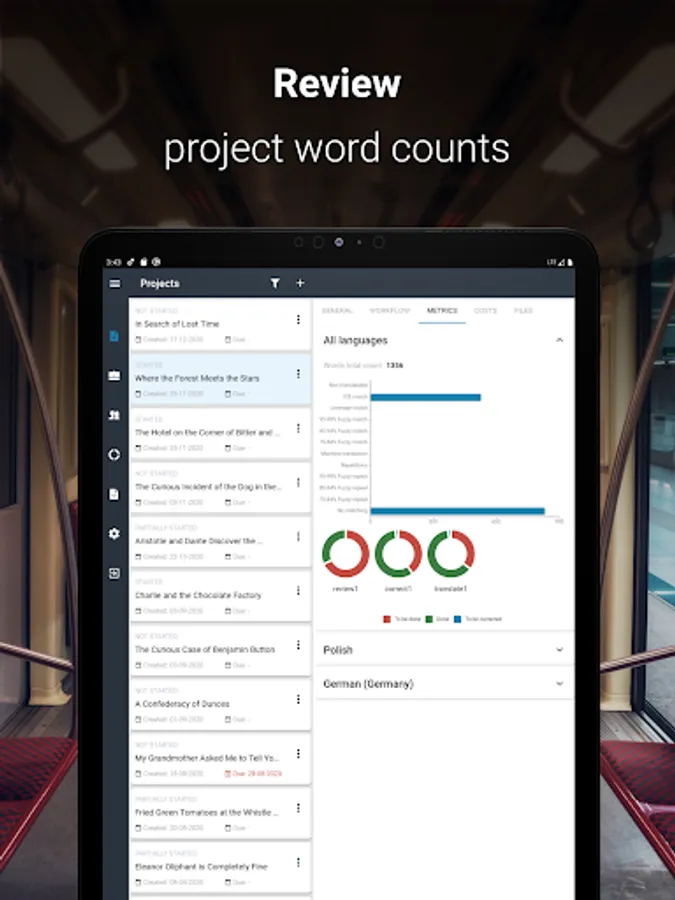 Stay on top of your XTM projects wherever you are. Whether you’re on a business trip or commuting to the office, always stay up to date on the progress of your projects and never miss a deadline. In addition, get actionable, live data with up-to-date metrics for all your projects.