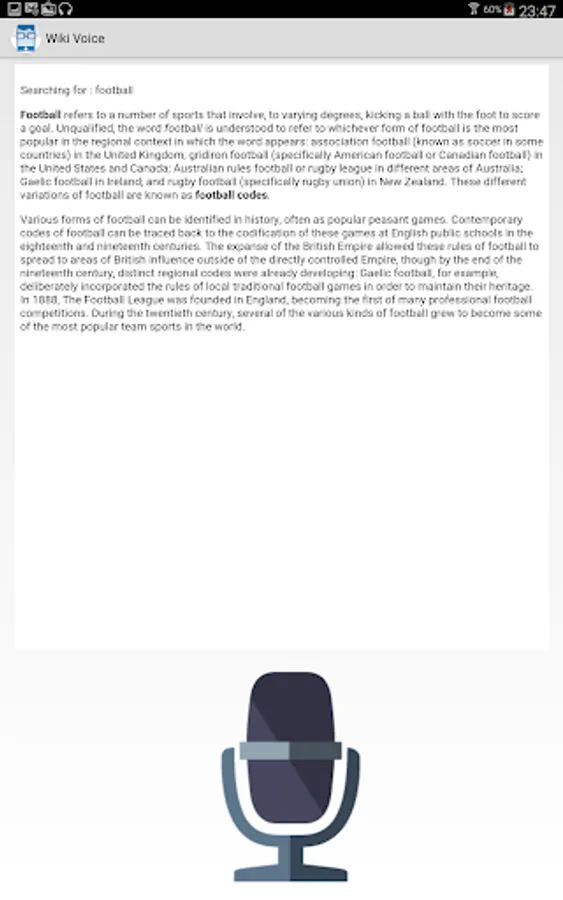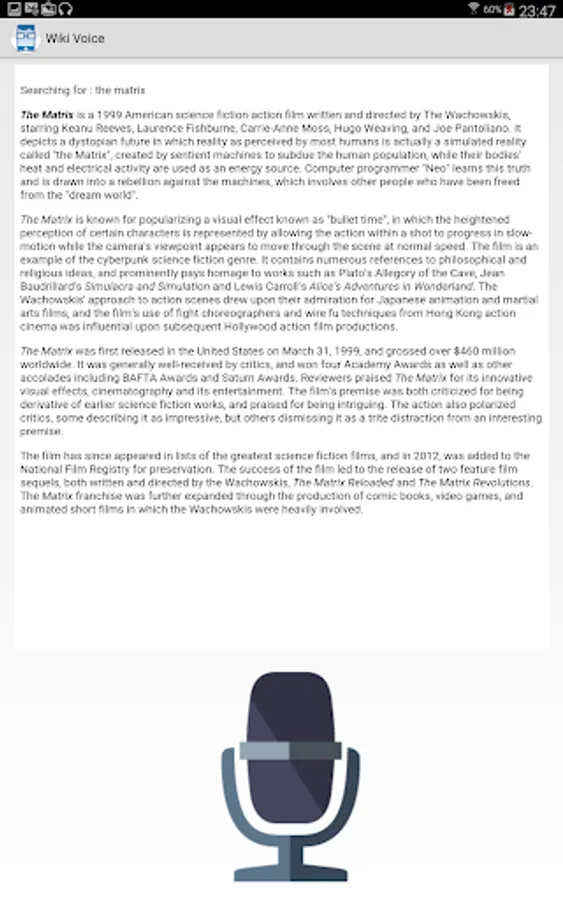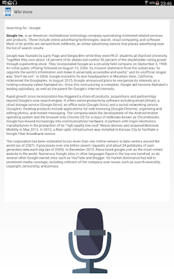 It also converts Wikipedia content to voice using Text-toSpeech engine.