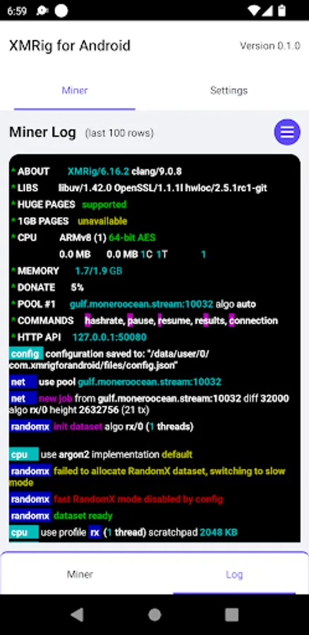 XMRig for Android App uses android arm/x86 version of XMRig to run on mobile.