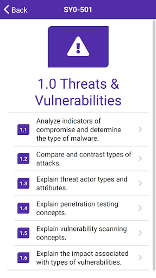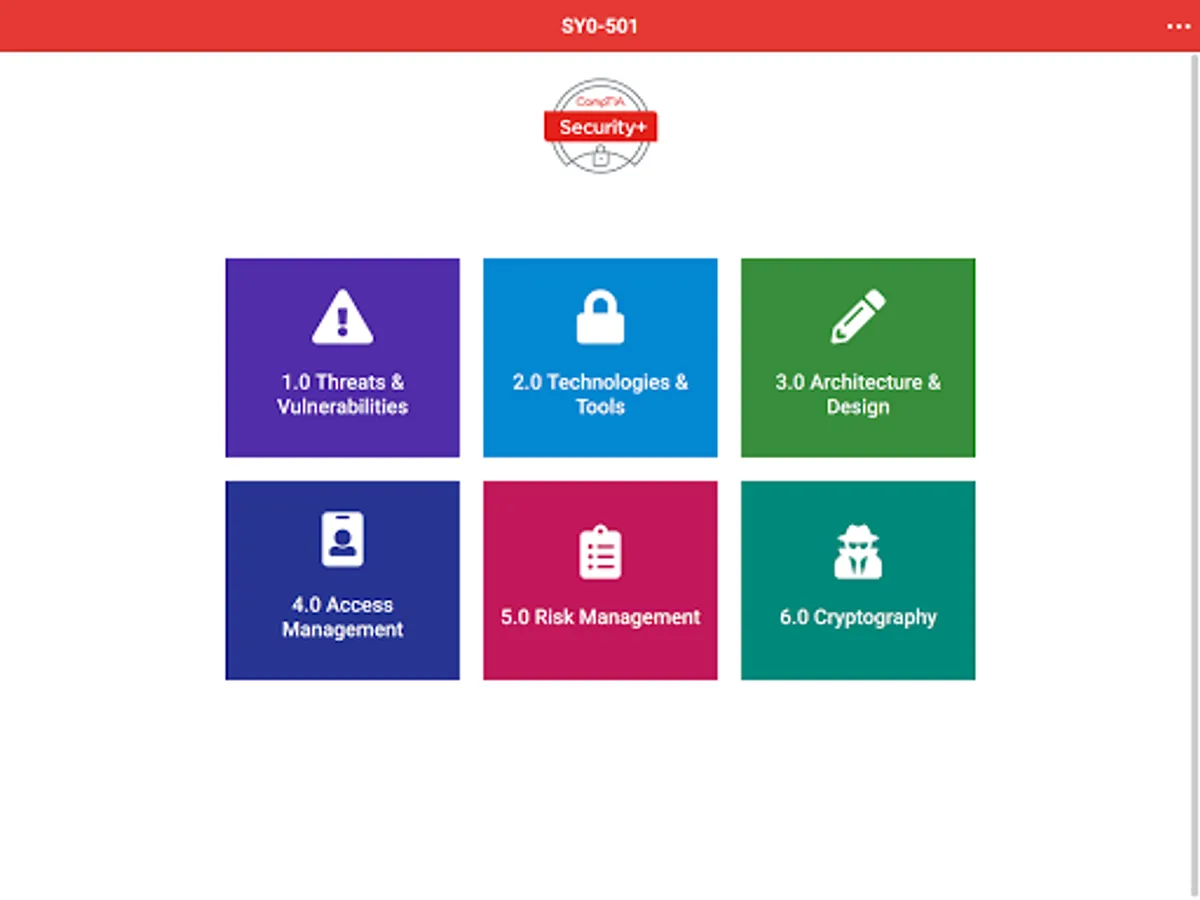 Converted the Security+ SY0-501 Exam Objectives PDF to a mobile application using the Ionic framework. Each objective has links to resources provided by Professor Messer.