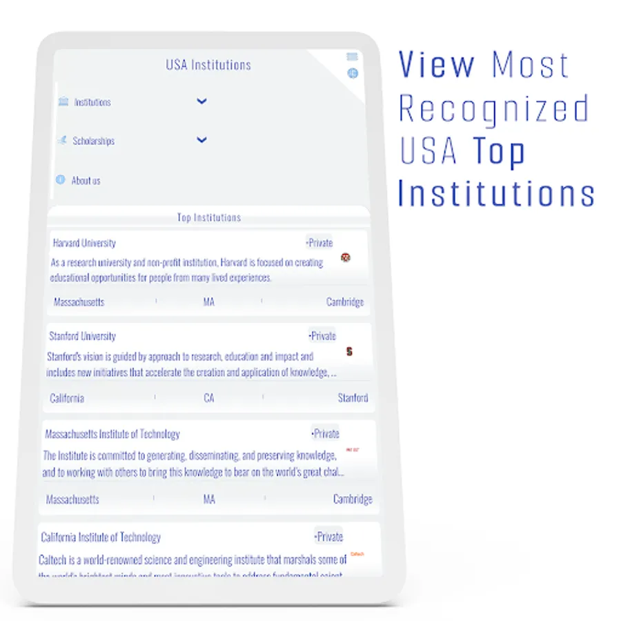 Note: We do not have all the list of available institutions in America. But then, we have made a simplified way for you to get some of the US most widely recognized institutions in the world.