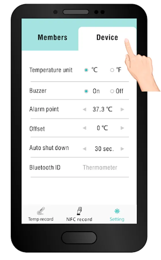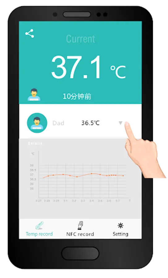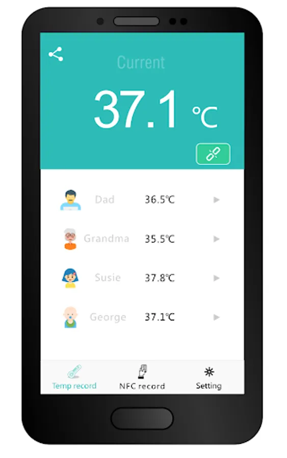 It work with a physical thermometer, which is Bluetooth enabled hardware, Users can easily connect through TempCapture app, to view the history data it collected. It provides more efficient way for people to collect, review, trace temperature change of specific person.