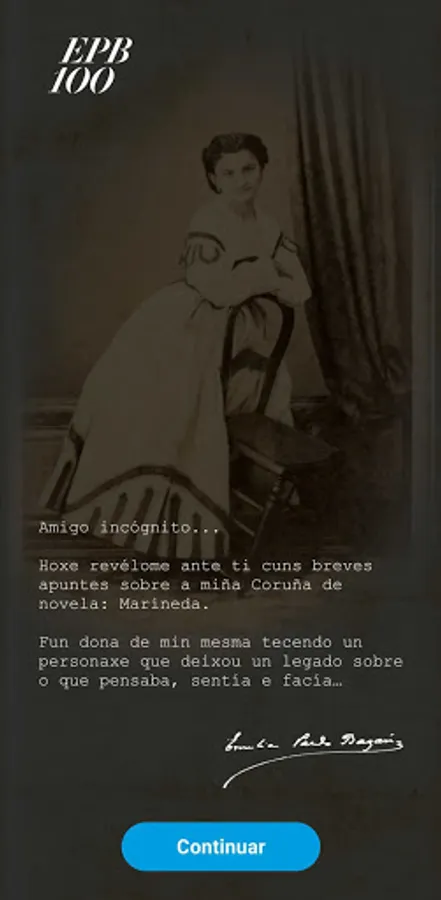 We welcome you to this new experience in the city of Coruña in which you will discover in augmented reality the story of Emilia Pardo Bazán.
