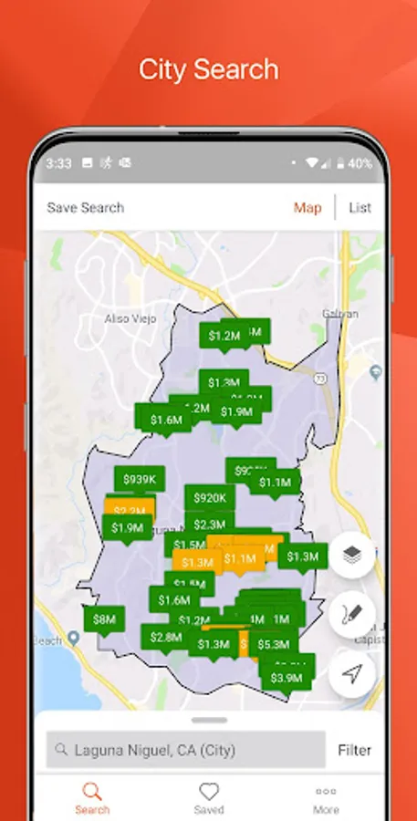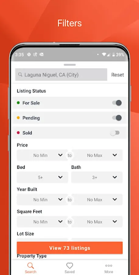 • You can filter your searches by the status of a property, the type, the price range, the number of bedrooms or bathrooms, the square footage, Open Houses, and more
