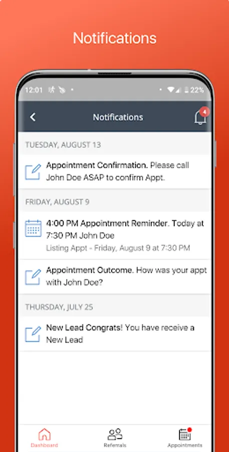 • Notifications: Reminders are provided to agents to ensure tasks are completed in a timely manner.