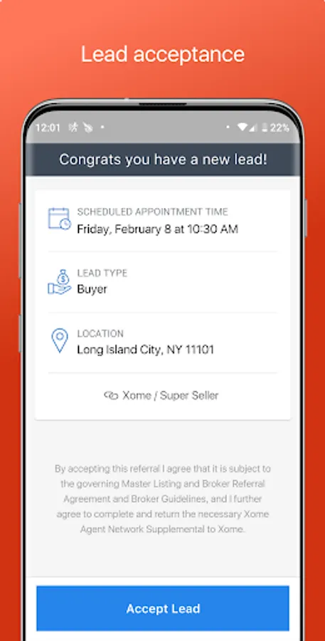 The XomePro mobile app is designed to quickly refer Xome sourced buyers and sellers to the Xome Agent Network. All agents in the Xome Network will use this app to accept the referrals and provide status updates to the Concierge and Agent Relationship Management teams.