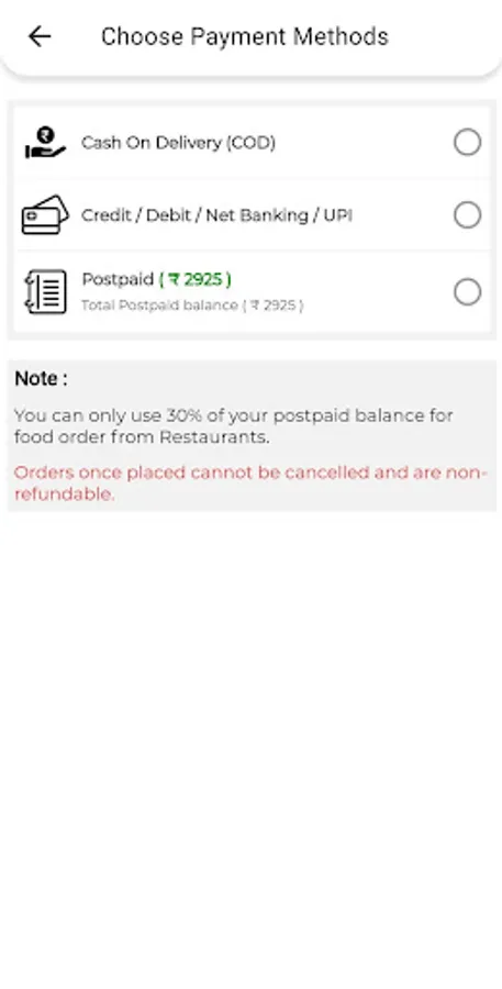 we have multiple payment option as per your convenience, like COD, Debit Cards, Credit Card, Online Banking , Wallet and UPI etc. However you have an another and unique payment method called Postpaid where you will be find buy now pay later option.