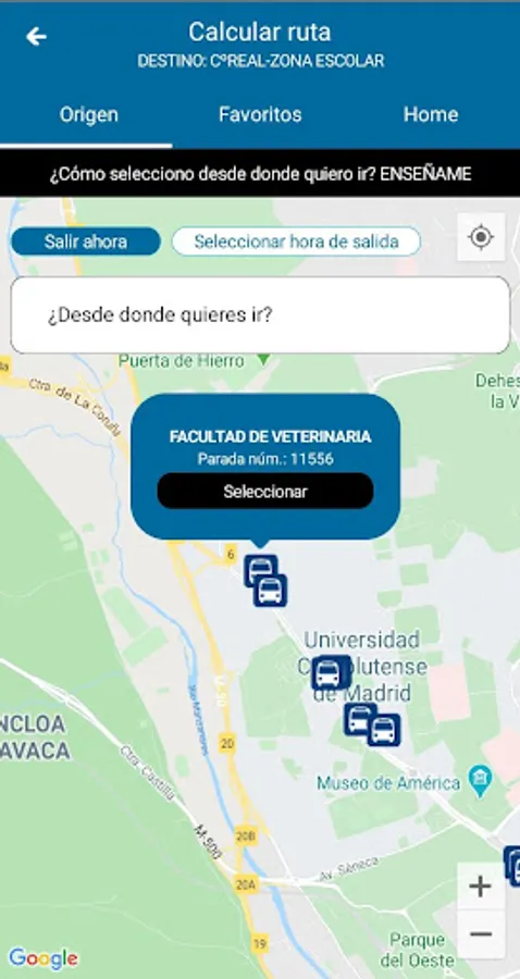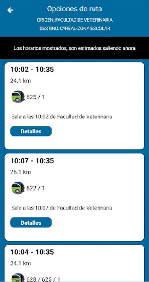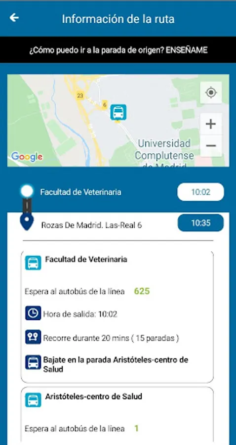 App for real-time information to the passenger of the Autoperiferia transport system that includes the following functionalities: