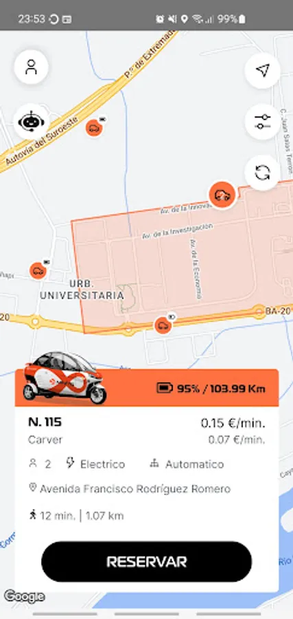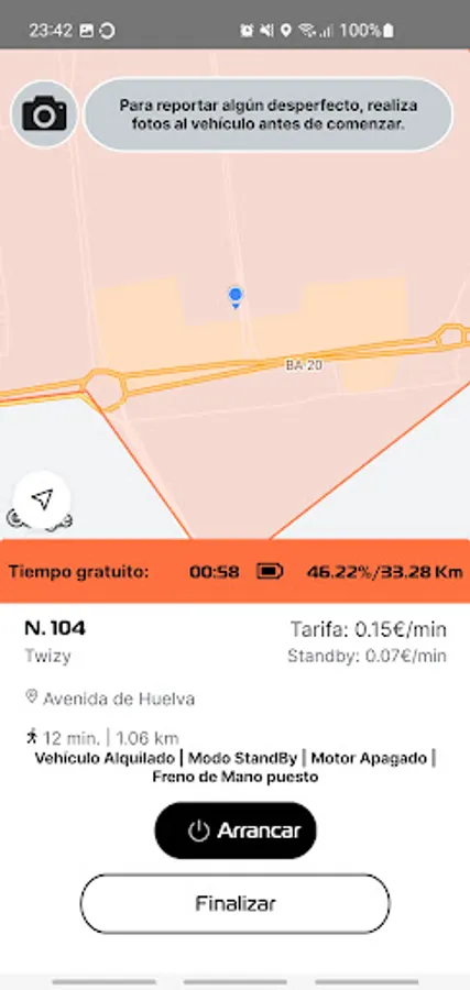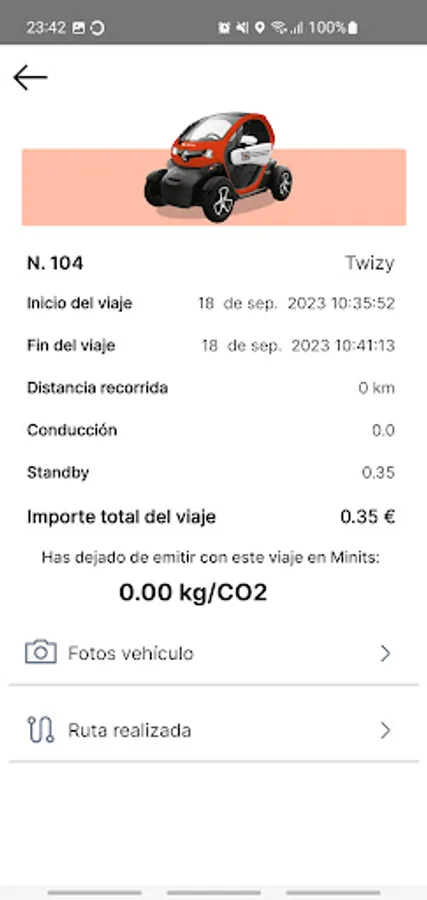 * Minits invoice for minutes of use of the vehicle, with an economic rate during the march, and another reduced while you have it reserved.