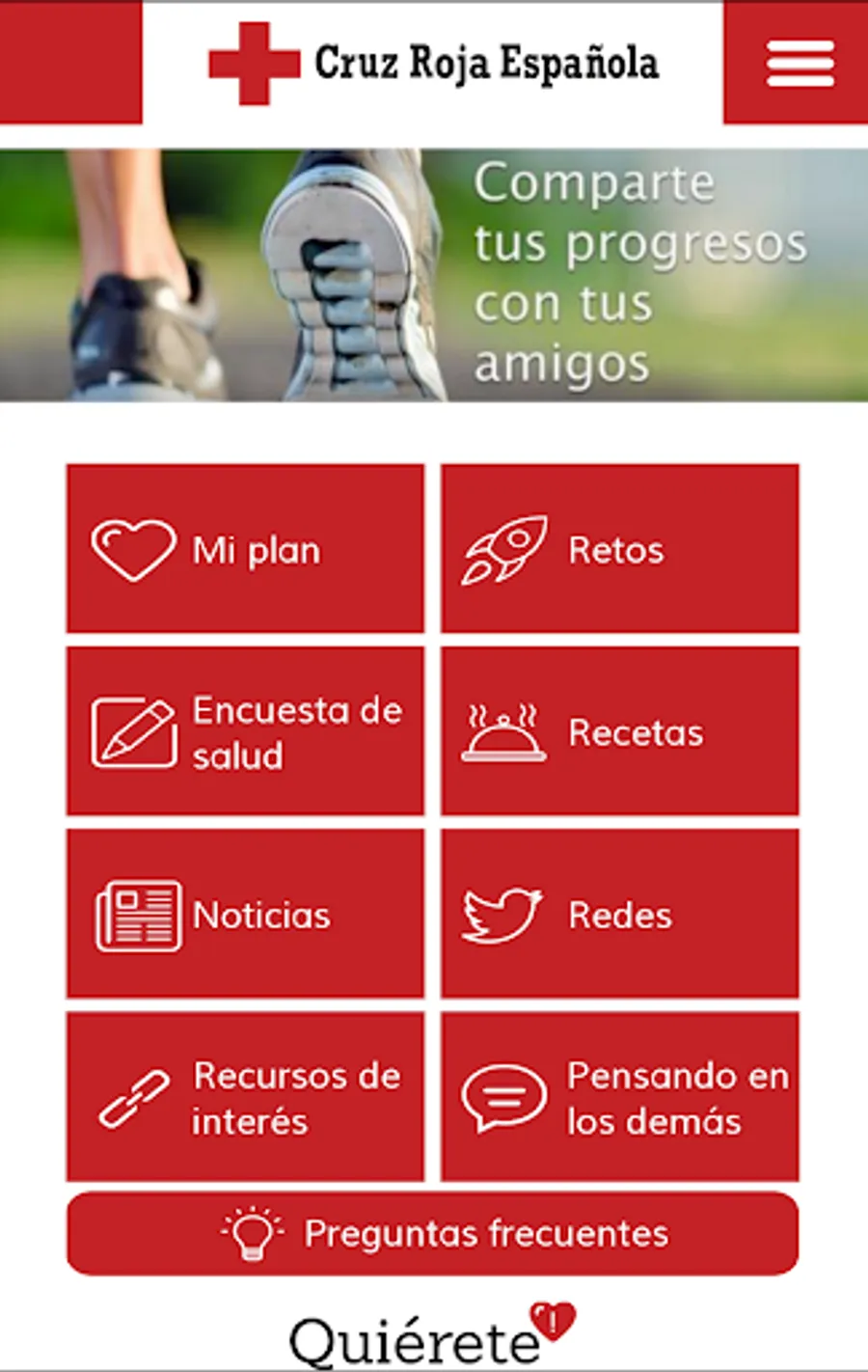 The 'Love yourself' application of Spanish Red Cross offers basic information and activities that will help you take care of your health (your diet, your exercise and your mind). You can share content and activities with other users and nonusers.