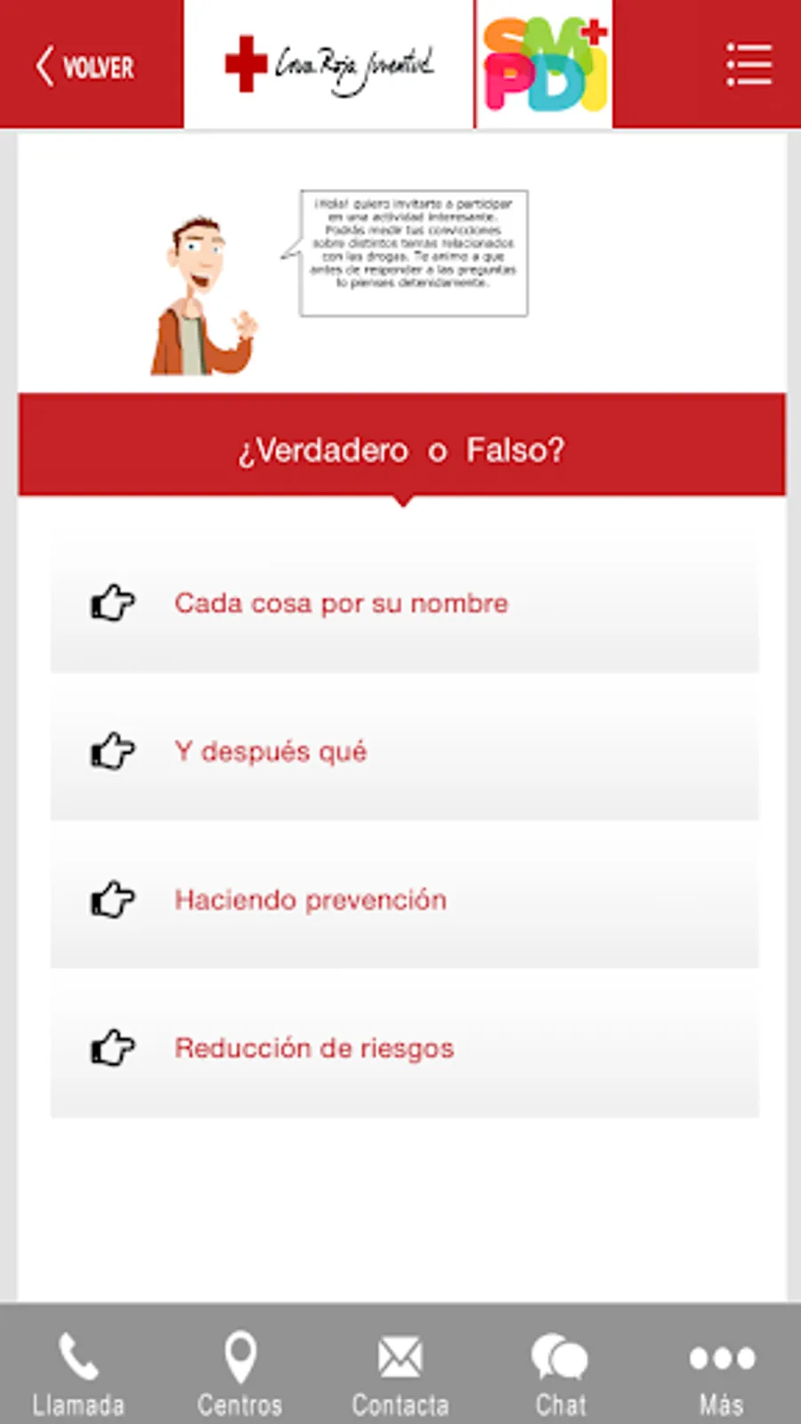 Information plays a key role in drug prevention and reduction of risks and harms associated with it. Therefore, Youth Red Cross provides this service through phone, WhatsApp, email, social networks, web your page and this application.