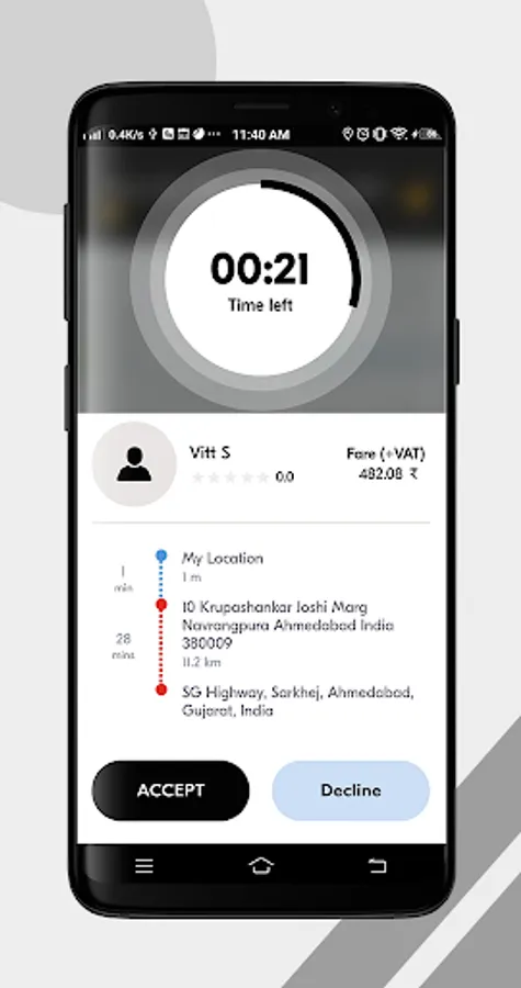 This app allows drivers to accept a cab ride invitation. While accepting rides, the app provides pickup and destination location, Fare info.
