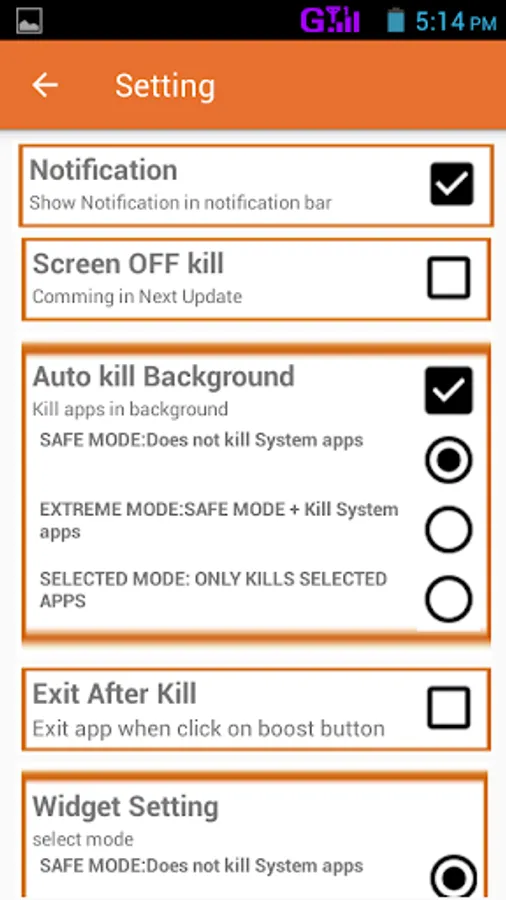 1.First make ignore list ( add app which are to be ignore from killing)-just Go to Menu->Ignore List & add app