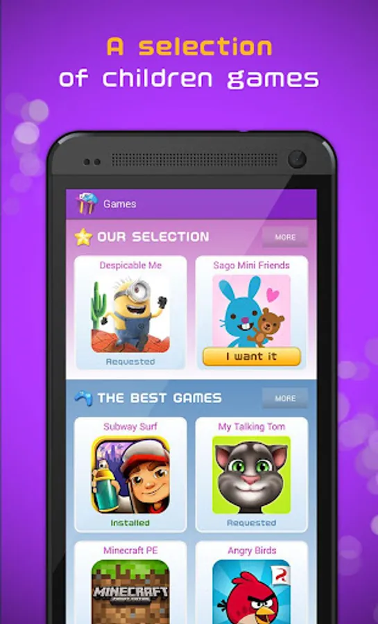 Your child can easily enjoy a selection of applications, games, videos and other content approved by you. The rest of your device is protected with your parent code. Transforming your smartphones and tablets into a digital playground for kids!