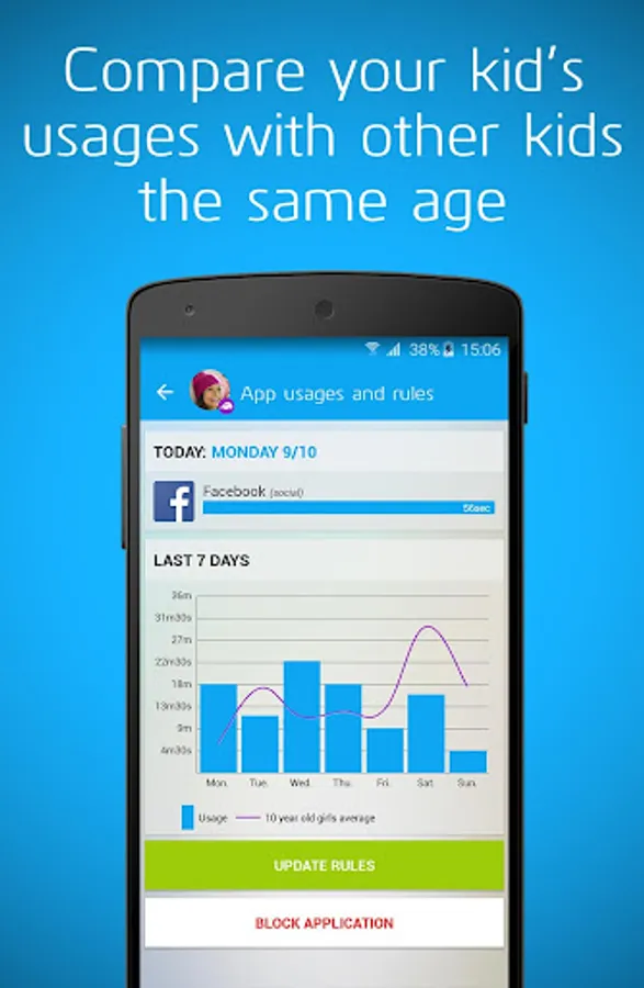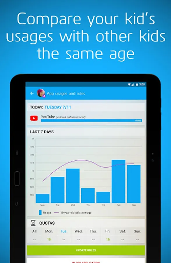 Compare your child’s smartphone and app time usage with other kids of the same age and region.