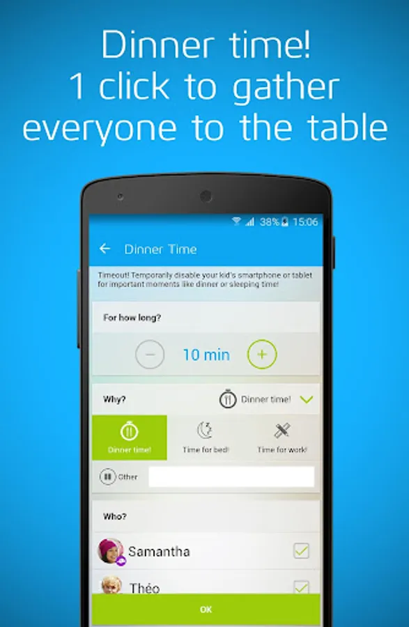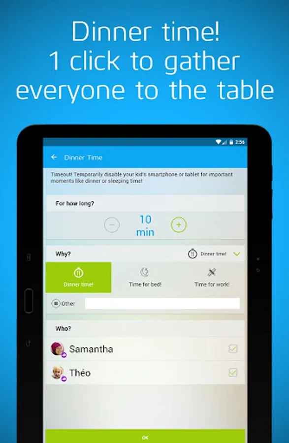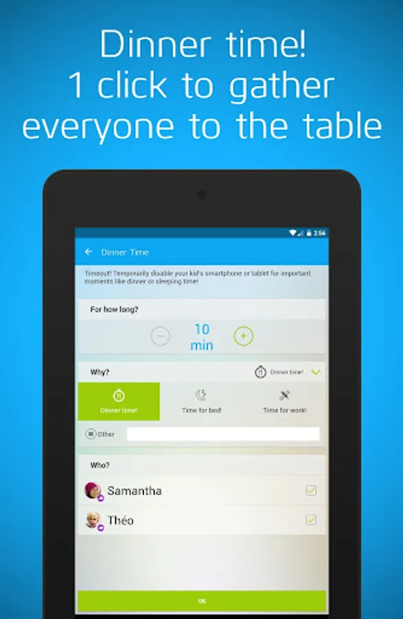 With the click of a button, temporarily disable your child’s smartphone or tablet. Bon appétit!