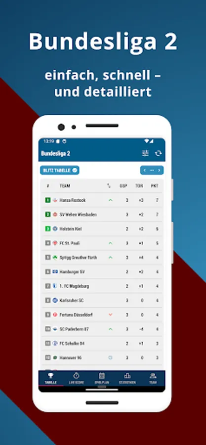 When you tap on a team in the standings table, you can find extended standings information. You can also see the latest matches played by the team.