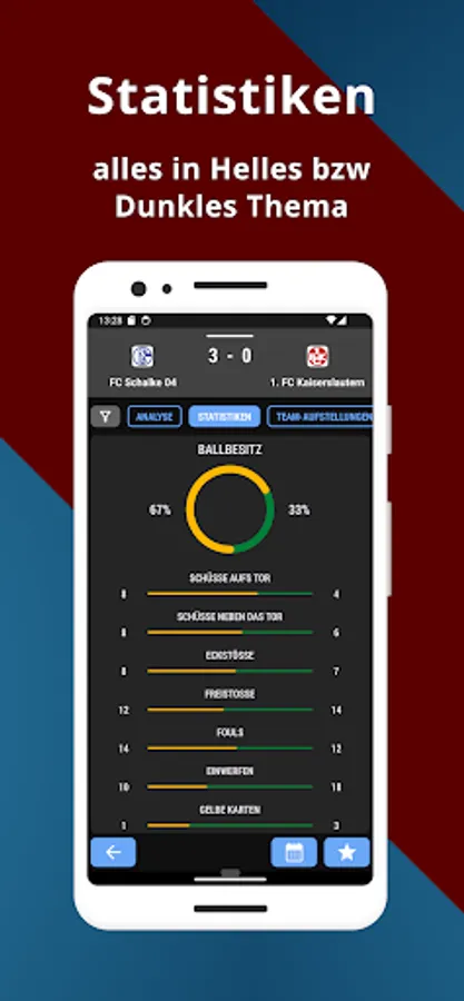 On the statistics page you can see ball possession, shots, fouls, and more.