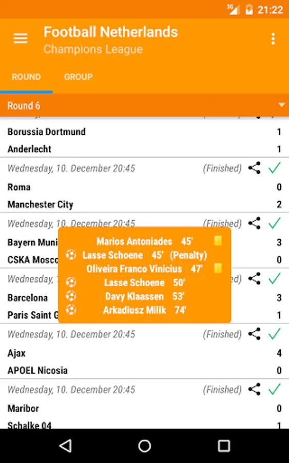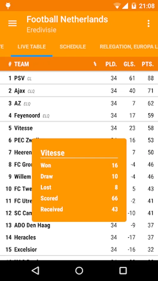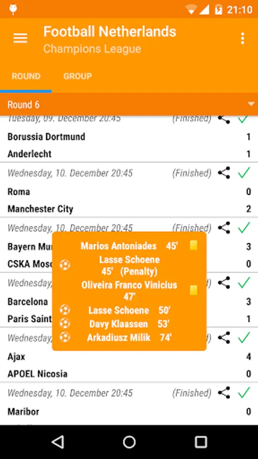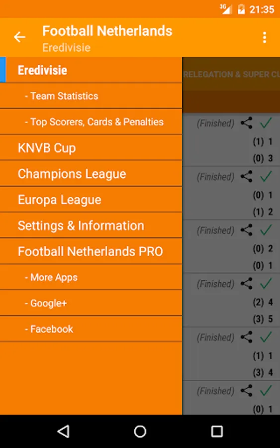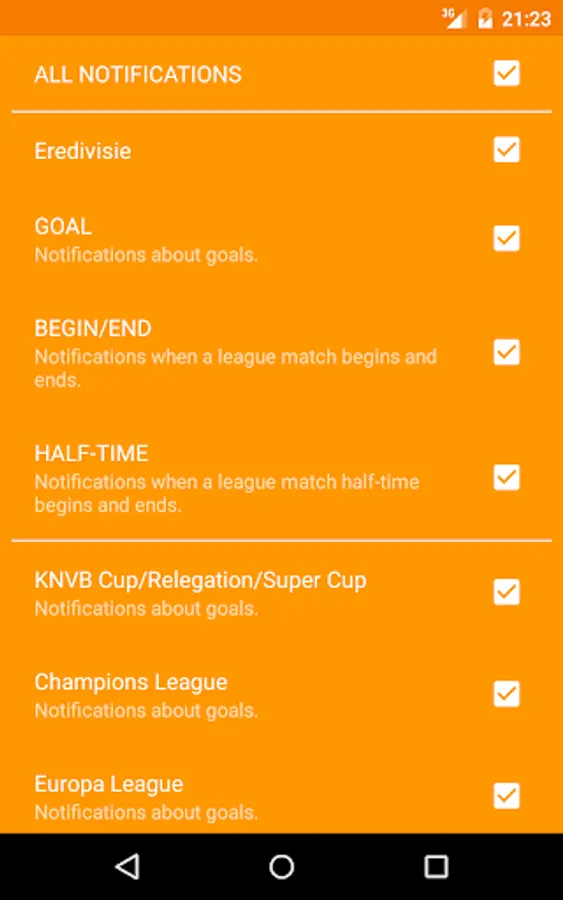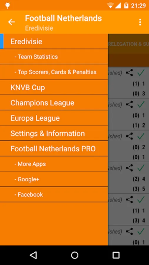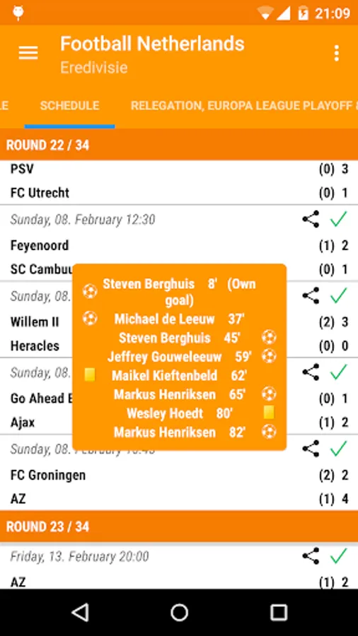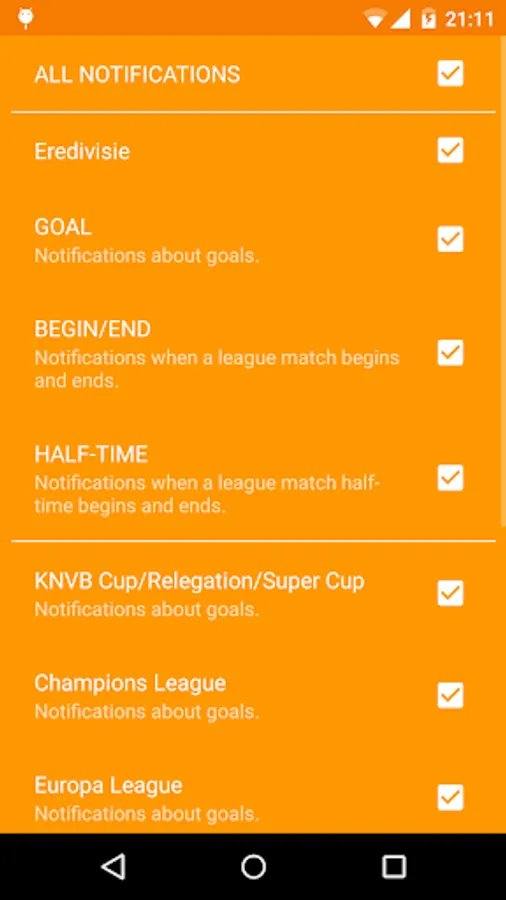 In the app you will find: Eredivisia, Champions League, Europa League and domestic Cup football...