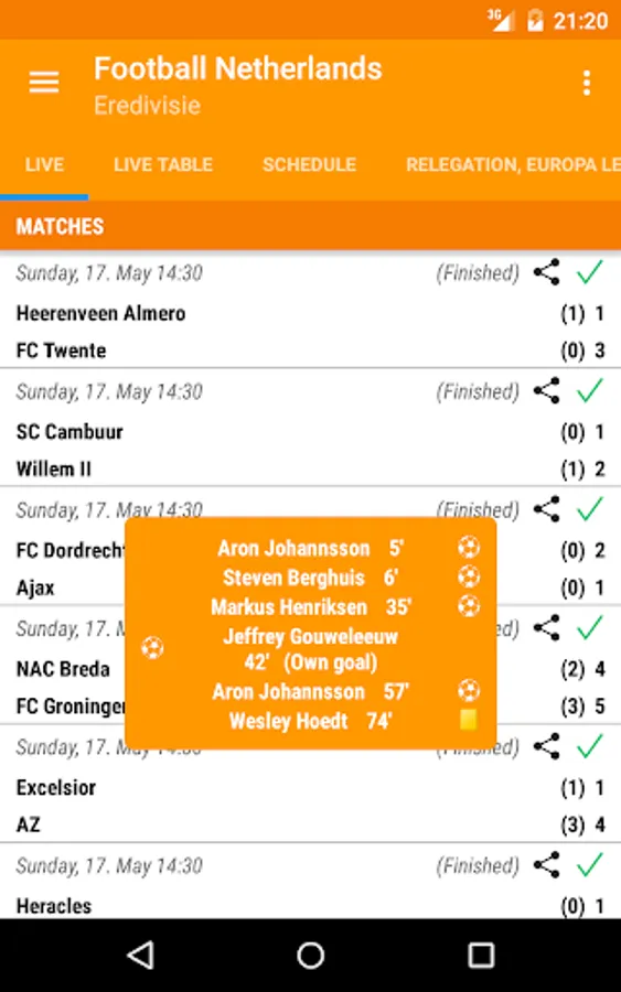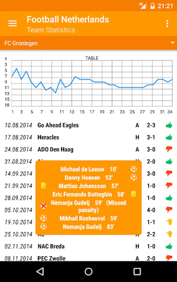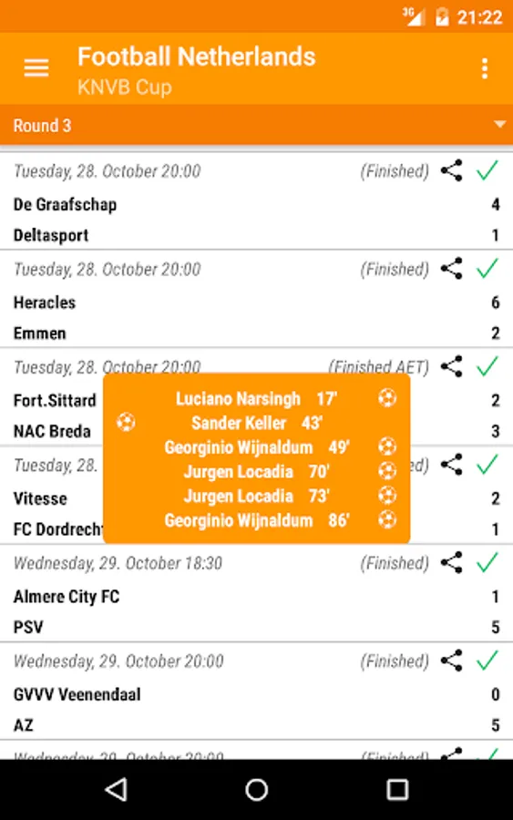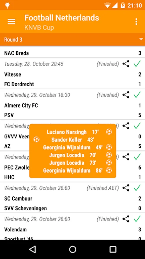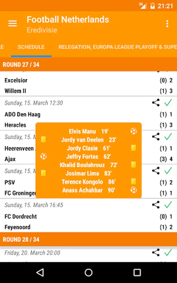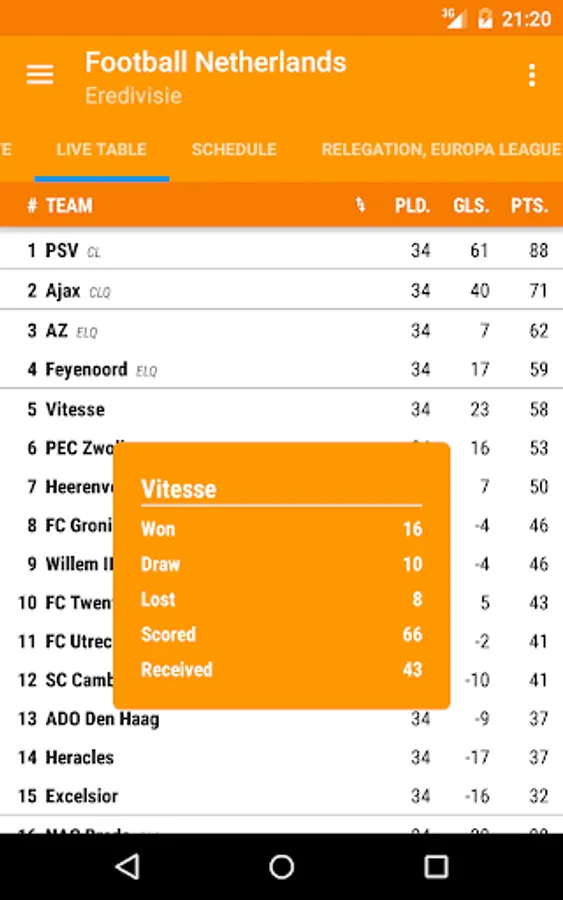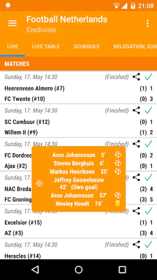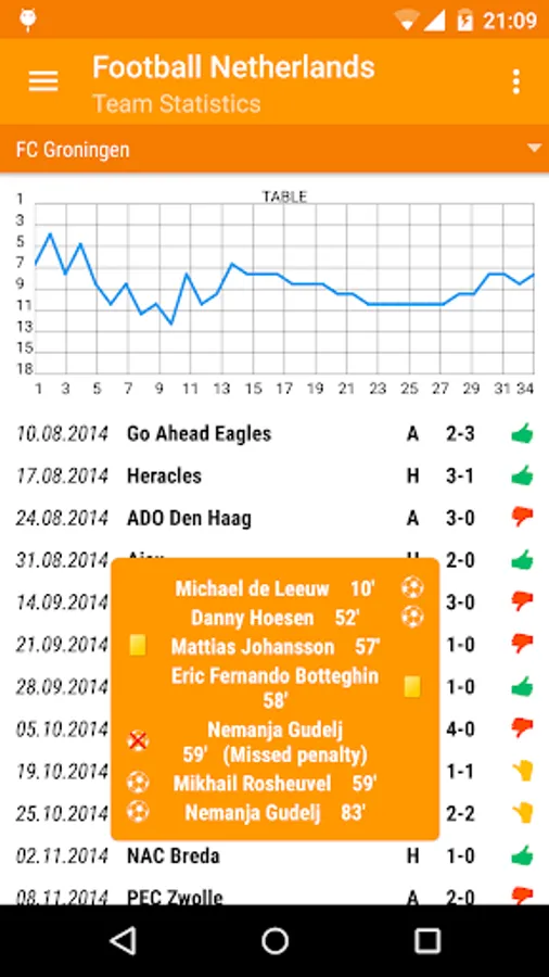 In the app you will find: Eredivisia, Champions League, Europa League and domestic Cup football...