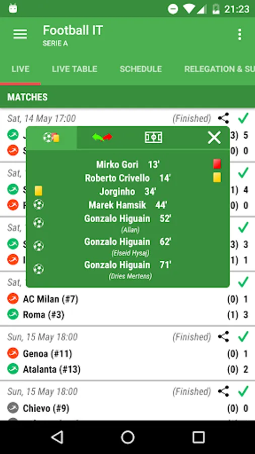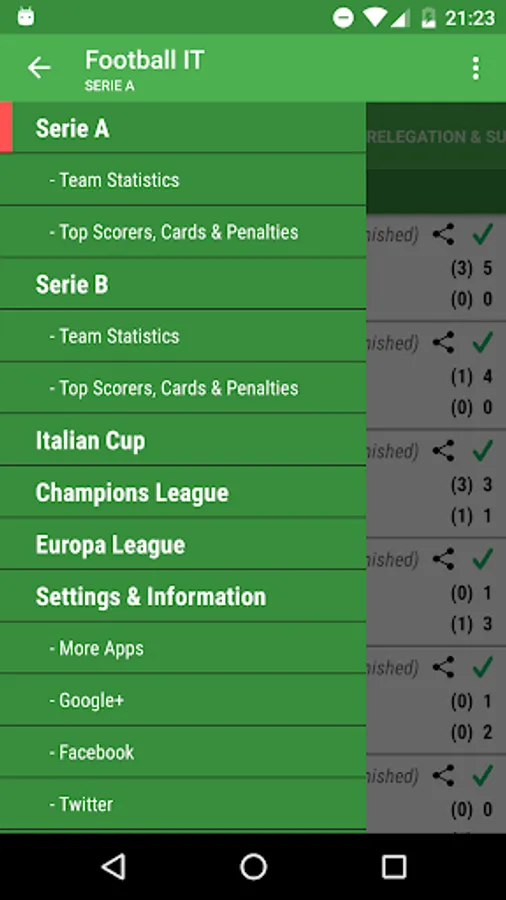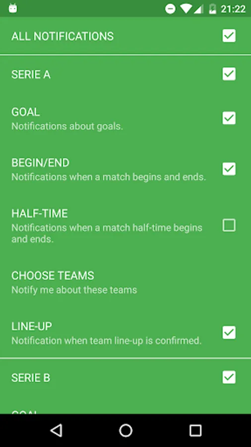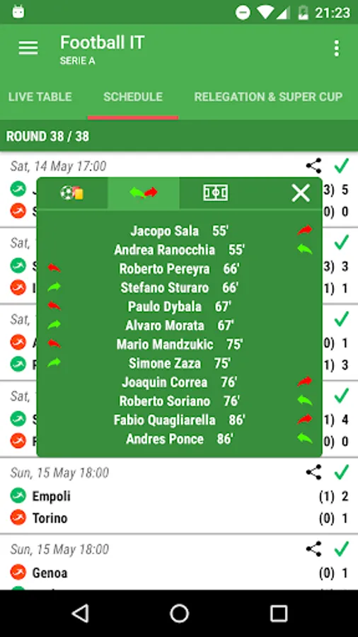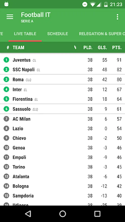 In the app you will find: Serie A, Serie B, Champions League, Europa League and domestic Cup football...