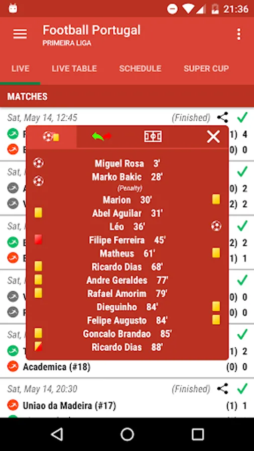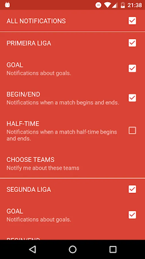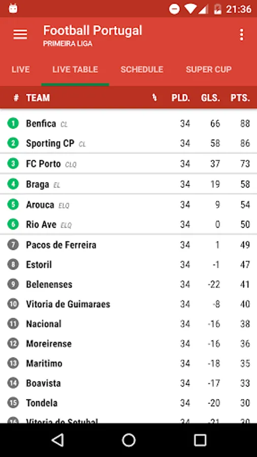 In the app you will find: Primeira Liga, Champions League, Europa League and domestic Cup football...