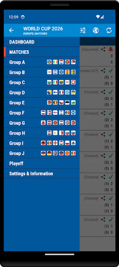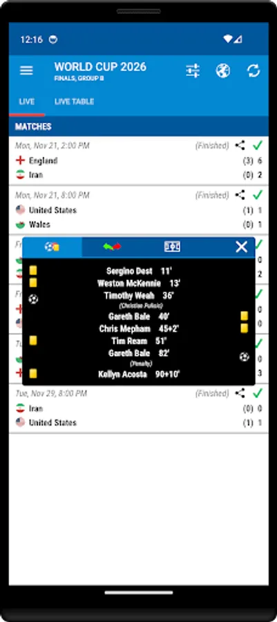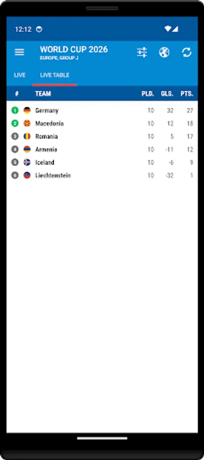You can find Live standings table, Live score, Fixtures, and Groups.