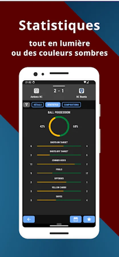 On the statistics page you can see ball possession, shots, fouls, and more.