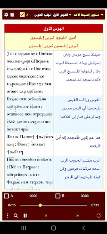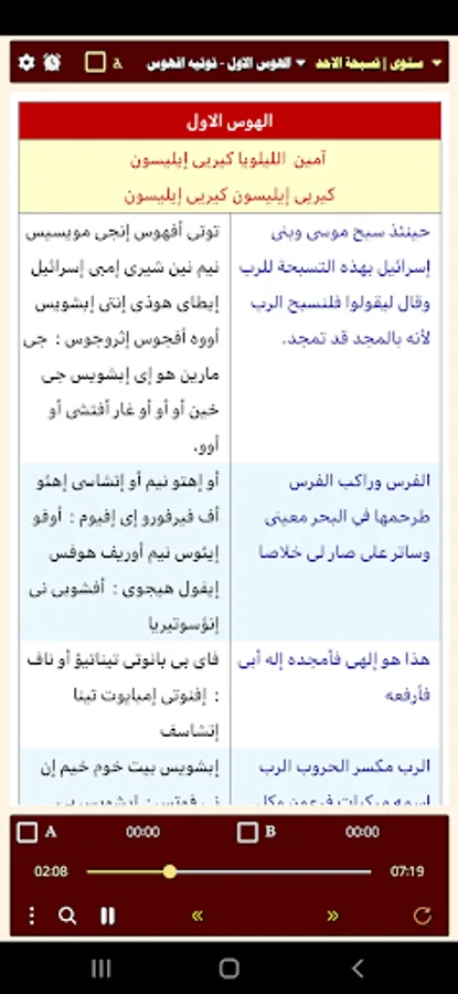 Midnight prayer, Coptic and Arabic, for all days of the week, written and audible without the Internet