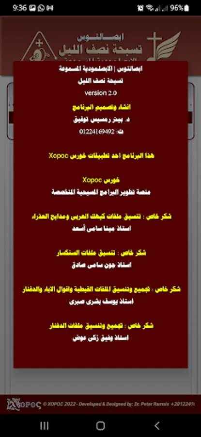 + It includes the text of Al-Devnar and the Synaxarium, completely variable, with the Coptic history, with the possibility of accessing any other date