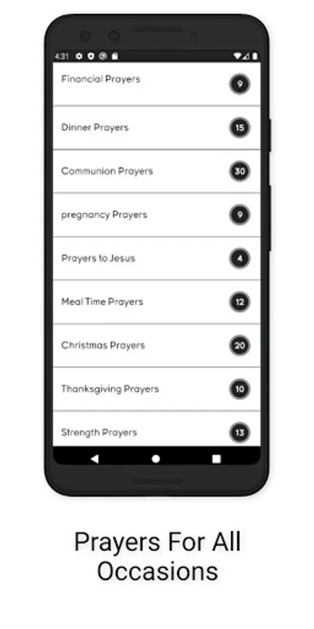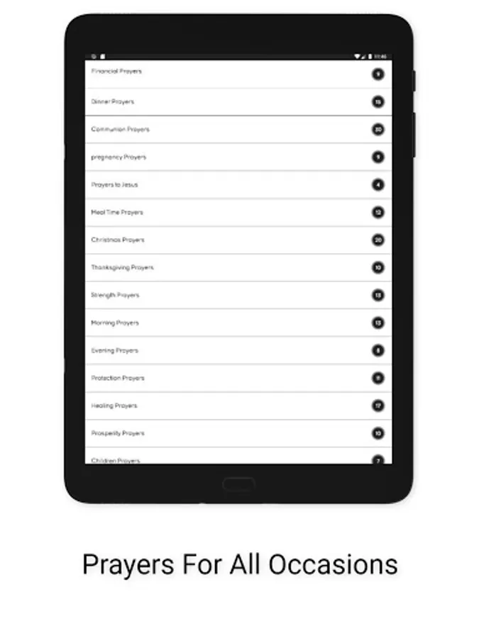 This app has different sections like health, strength, relationship, protection, prosperity, children, holiday, Christmas, Thanksgiving, Mealtime ....Download this app and select the prayer for the situation and thank god for everything he has done for us.