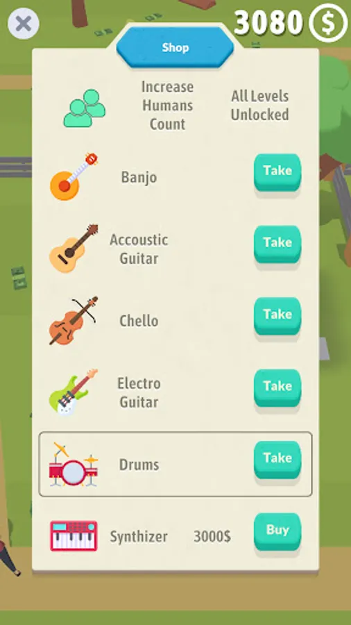 Choose your own pace and set the rhythm for the melody with each of the musical instruments. Try to keep the balance between the desire to earn more money and the risk of collision if the people start dancing too fast.